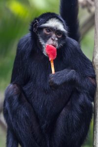 Fotografía que muestra a un mono comiendo un helado este martes, en el BioParque de Río de Janeiro (Brasil). EFE/ Antonio Lacerda